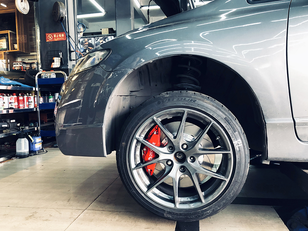 不求頂級配置,合適才更為實用,就好比如剎車,你可以升級制動力比四活塞更強勁的六活塞,但對于這臺不升級總泵的八代思域來說四活塞更能發揮其全部制動性能。