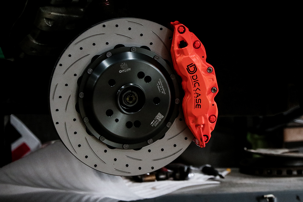 匹配的DICASE原廠355*32高碳性能制動盤,具有獨(dú)特的制動盤花紋設(shè)計,更加有效地增加摩擦系數(shù),良好排除剎車片粉塵,消除風(fēng)阻噪音,定制迪卡司專屬合頭直上原車輪轂,提升制動力剎車效果。